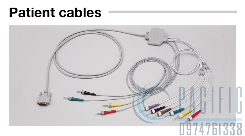 Dây điện tim cho máy 3 hoặc 6 kênh của hãng Nihon Kohden, Nhật Bản. Phù hợp tiêu chuẩn IEC, với 10 điện cực (4 điện cực chi, 6 điện cực ngực), cho ra 12 đạo trình (Ngoại biên, Chi, trước ngực).
